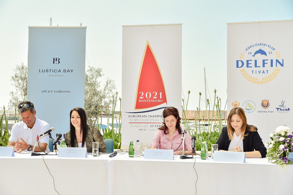 Umjesto ceremonije koju nije bilo moguće organizovati u skladu sa aktuelnim epidemiološkim mjerama, takmičenje je danas zvanično otvoreno u amfiteatru naselja Luštica Bay konferencijom za novinare, na kojoj su o organizaciji Otvorenog prvenstva Evrope i značaju takmičenja iz sportske i perspektive jedrenja kao proizvoda sportskog turizma govorili potpredsjednik EURILCA i predsjednik Regatnog odbora EECU21 2021 Tivat, Zlatko Jakelić, menadžerka korporativnih komunikacija kompanije Luštica Development, Maša Radulović, sekretarka Sekretarijata za društvene djelatnosti Opštine Tivat, Borka Mršulja i direktorka Turističke organizacije Tivat, Danica Banjević.